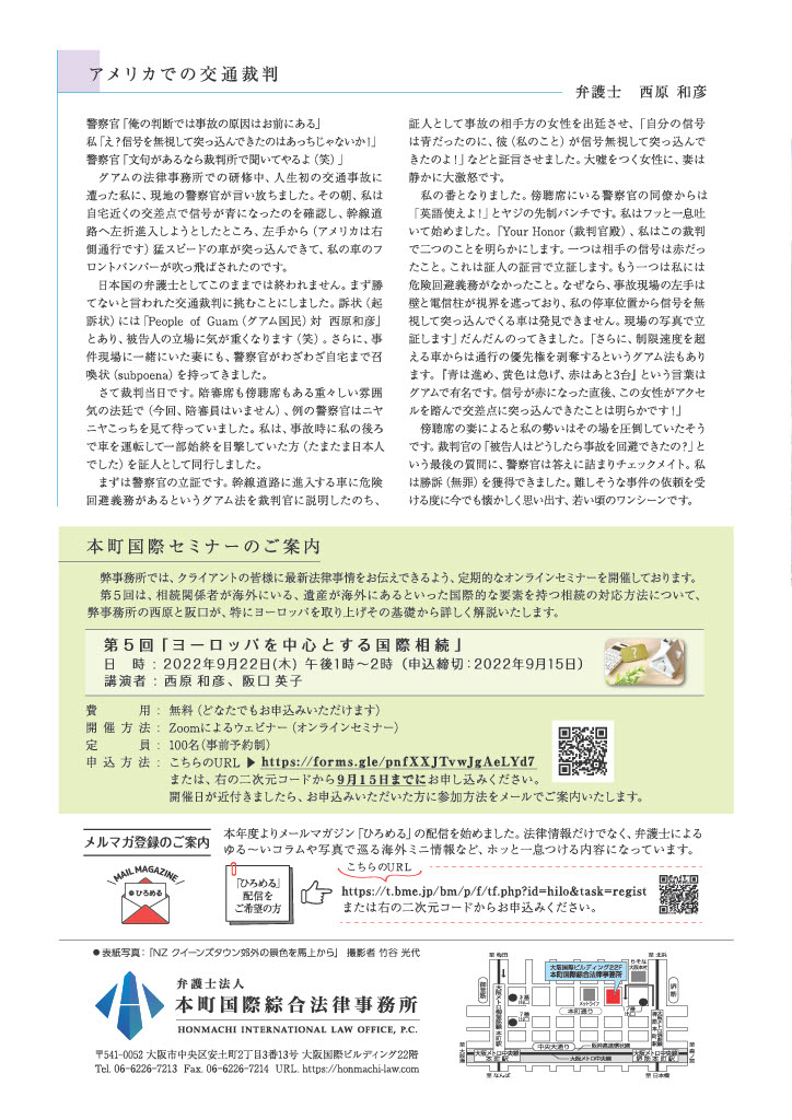 本町国際綜合法律事務所ニュースレター第3号を発行しました。ぜひご覧ください(画像をクリックすると拡大します)。